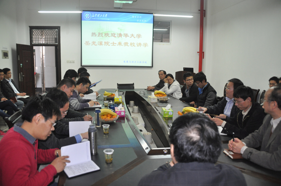 应能动学院的邀请,我国循环流化床燃烧技术的领军人物,清华大学教授岳光溪院士2011年11月23日至24日在我校讲学。23日晚,能动学院领导陪同学校党委书记王耀中教授专程到岳院士下榻的宾馆看望了岳光溪教授,王书记对岳院士百忙中抽时间来我院讲学表示热烈欢迎和诚挚的谢意,随后双方进行了愉快的交流,王书记在介绍我校办学基本情况的同时,希望岳院士能以这次讲学为契机,加强双方合作,推动能动学院的学科建设和科学研究工作。