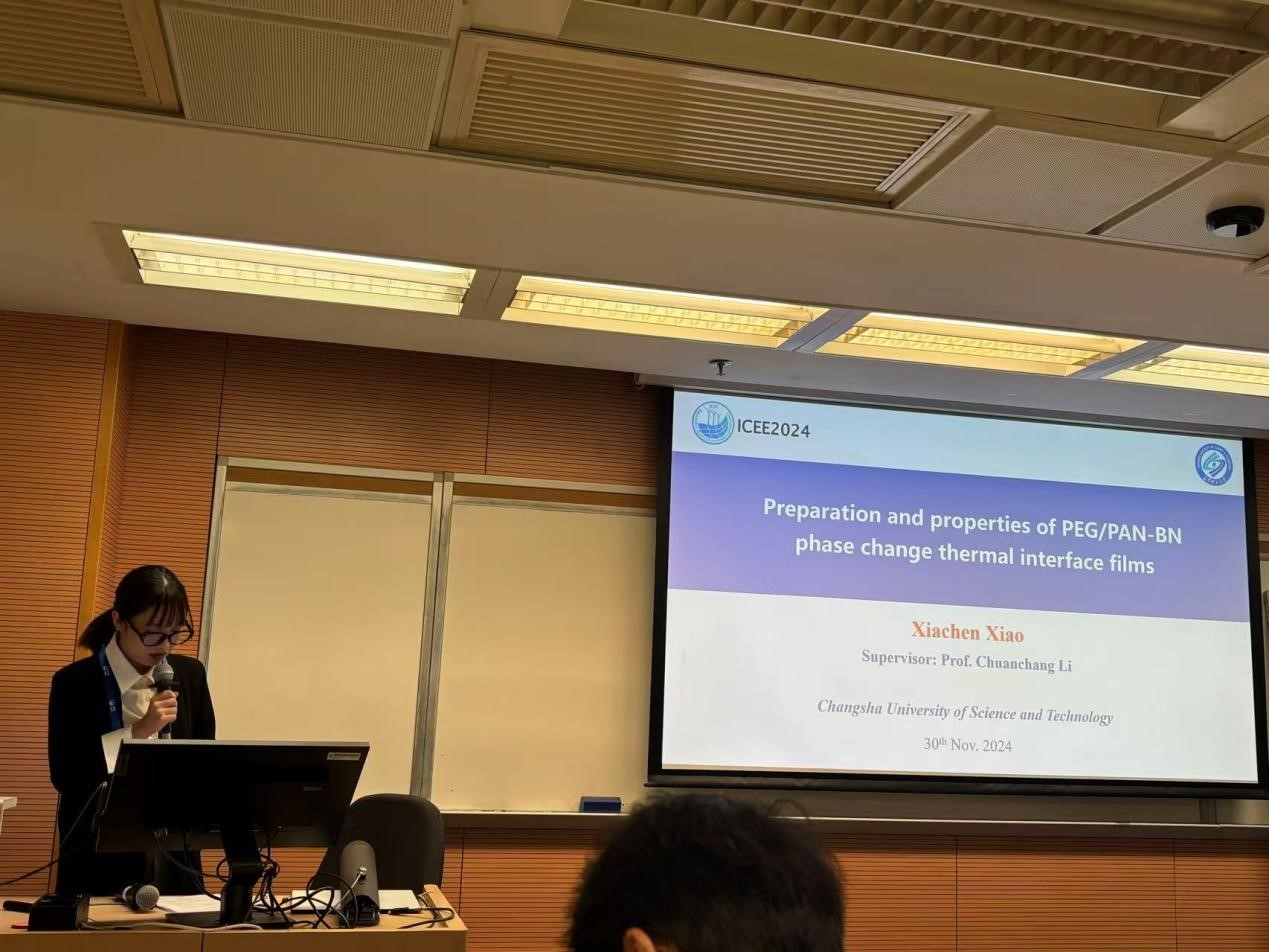 孙小琴教授主持分会场Session 18: Energy storage for energy-efficient buildings并作“Operation strategy and performance evaluation of the distributed photovoltaic-battery system in residential buildings with phase change materials”学术报告;谢宝珊博士主持分会场Session 9: Thermal Energy Storage并作题为“Mineral-based composite phase change material for packed bed thermal storage system”学术报告;王蒙博士于Poster Session展示“Modelling the Performance of Semi-Transparent Photovoltaic Windows Considering Solar Spectrum”研究进展;李传常教授课题组研究生马芹、肖夏琛分别作题为“Ternary Eutectic Phase Change Cold Storage Materials for Cold Chain Transportation of Aquatic Products”、“Fabrication of Optimized PAN/PEG-BNNS Nanofiber Membranes for High-Performance Thermal Management via Electrospinning Technology”学术报告。通过此次会议,我院师生深入交流并学习了能源技术领域的科学前沿与研究热点,不仅拓展了其学术眼界也提升了科研水平。