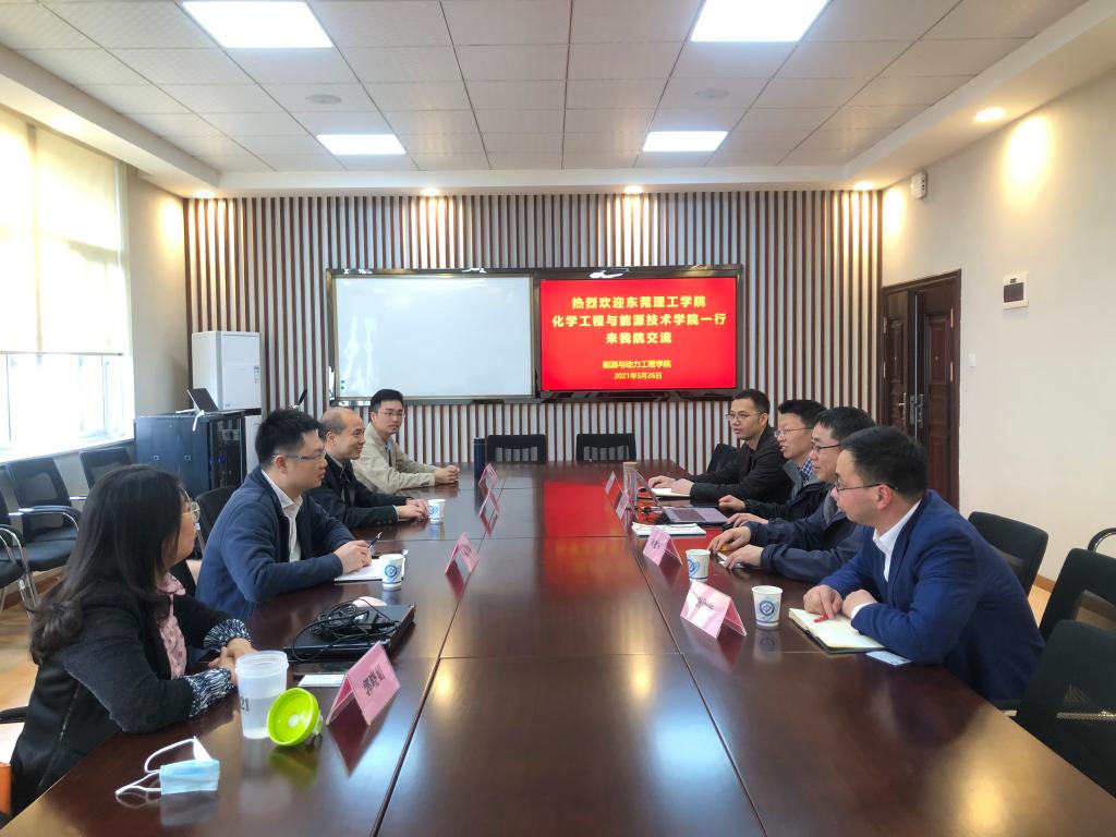 2021年3月26日下午,东莞理工学院化学工程与能源技术学院陈佰满副院长、左远志教授、郭晓娟主任和林有胜副主任来太阳成集团tyc122cc入口能源与动力工程学院进行教学和科研交流。我院何建军副院长、宋权斌、唐明珠和尹艳山老师参加了交流活动。