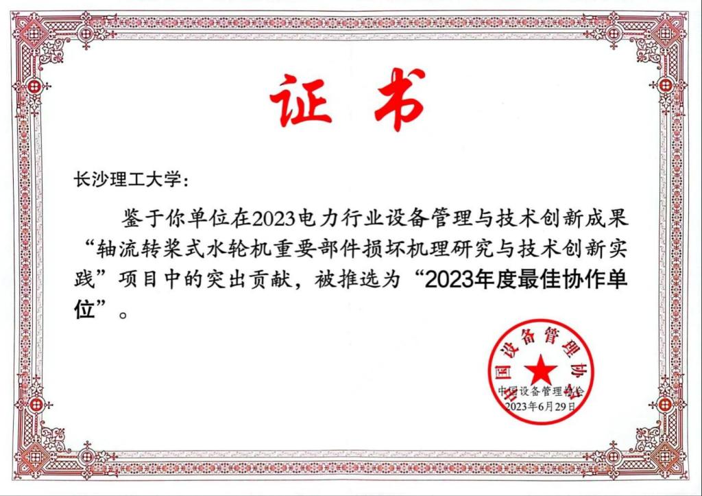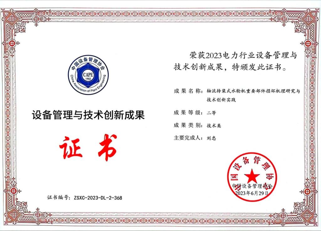 629日至30日,由中国设备管理协会主办的2023行业设备管理与技术创新成果交流大会在浙江省温岭市举行。贵州清水江水电有限公司挂治水力发电厂和我校共同完成的“轴流转桨式水轮机重要部件损坏机理研究与技术创新实践”荣获2023 电力行业设备管理与技术创新成果二等奖,我校被授予“最佳协作单位”。校方主要完成人、我院刘忠教授参加了此次大会。