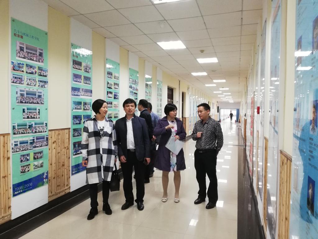 刘部长一行人参观了位于工科一号楼B区四楼的我院文化长廊,邱书记从办学目标定位、研究总体思路、人才培养目标、“三三四”人才培养模式改革实践、人才培养模式等方面介绍了我院的新工科个性化人才培养模式。接着,刘部长一行人考察了我院以CRT方程式赛车团队、“切糕王子”团队为代表的优秀创新创业团队建设情况、参观了我院个体成长辅导室、职业发展与就业指导培训室等硬件设施,最后还调研了我院“课程思政”开展情况,由学院院长杜荣华主编、东北师范大学出版社出版的《机械类课程思政案例》一书,获得了充分肯定。