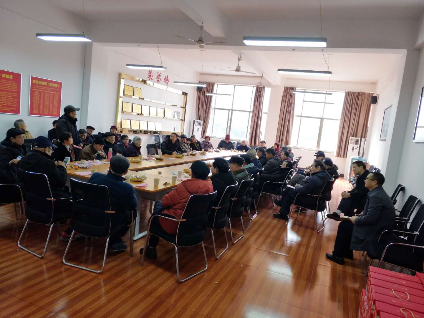 院长杜荣华介绍了2019年学院建设发展现状及所取得的成绩并向离退休老师们宣读了学院2019年的光荣榜表彰内容。同时着重阐述了2020年的重点工作任务并明确了学院发展目标。
