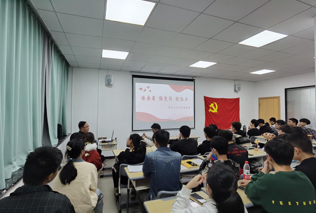 近日,汽机学院智能制造系副主任,副教授周小杰老师应邀于行五105教室与学员们共同学习党的二十大精神。本次研读活动由班长段金宏主持,第二十六期预备党员培训班全员参与。