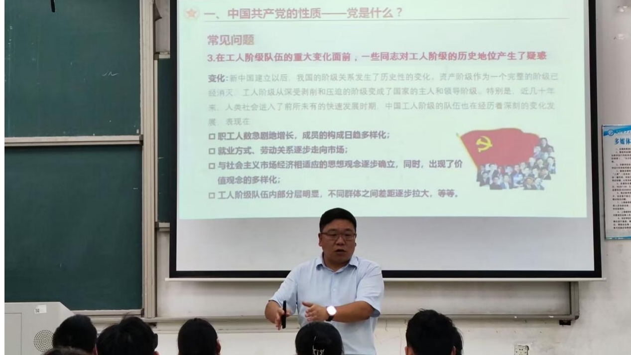 4月25日下午,汽机学院分党校在工科一号楼A106组织第43期入党积极分子培训班专题培训,学校城南学院副院长靳攀科应邀主讲《党的性质、宗旨和指导思想》。