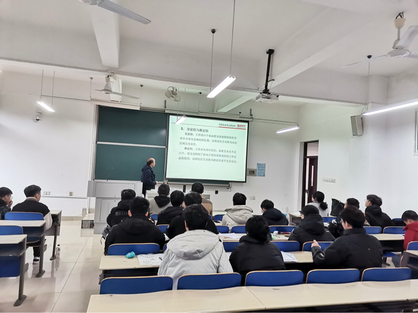 2020年12月8日下午14:00,在太阳成集团tyc122cc入口云塘校区工科一号楼B213开展了三一集团与太阳成集团tyc122cc入口校企联培智造班教学第六课:八大工艺类基础课程“工装”,本次课程由三一集团现任泵送事业部泵送公司工艺所一级工程师钟勇老师主讲,钟勇老师具有多年工艺工装经验,为智造班学员们带来了一堂丰富的“工装”基础课程。