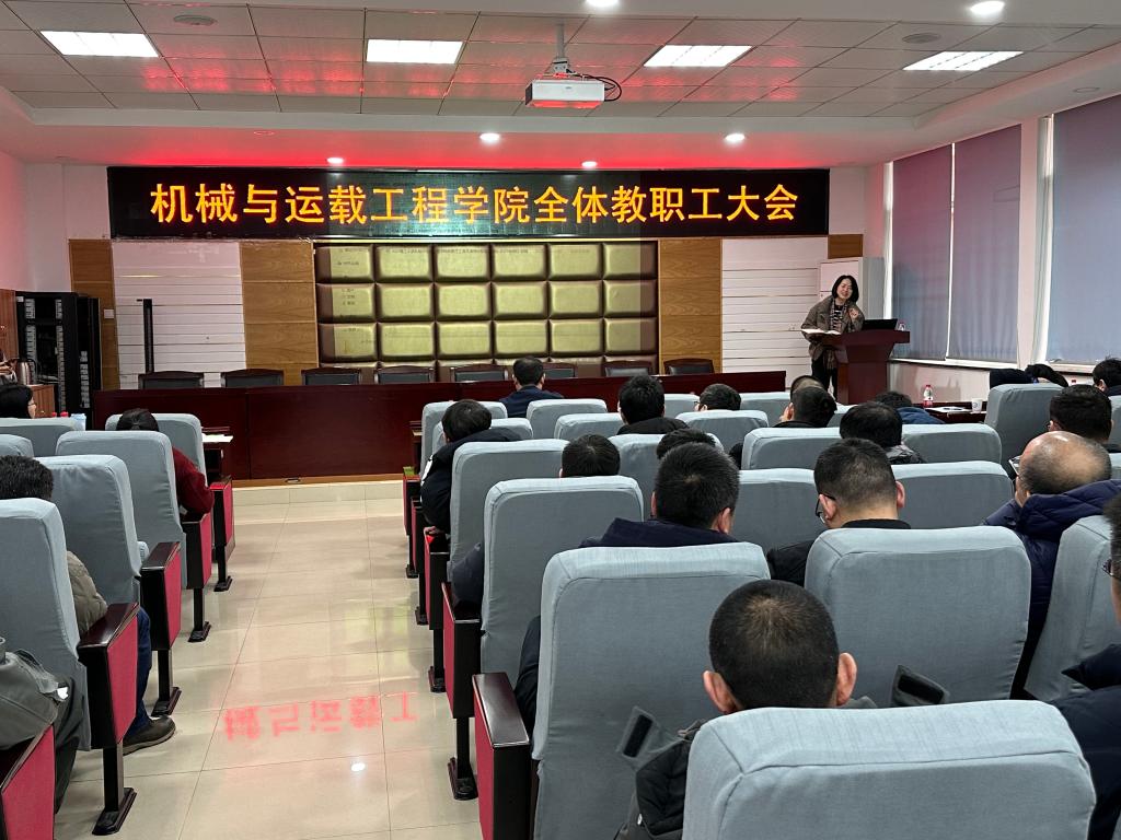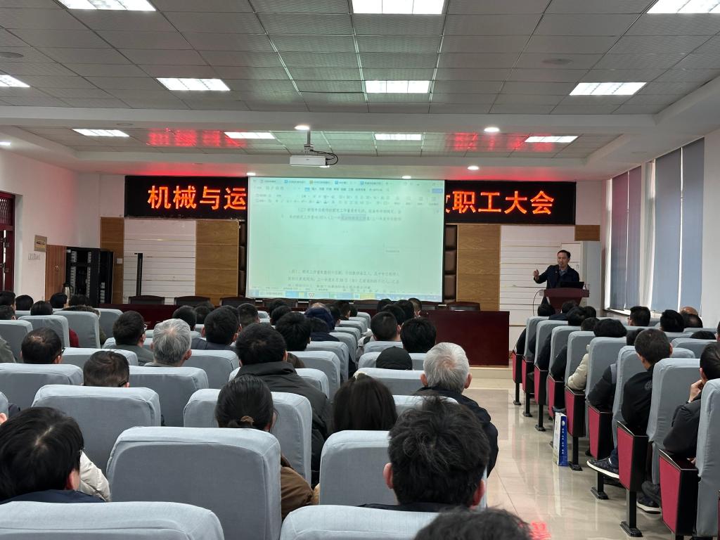 3月4日下午,机械学院在工科一号楼B417多功能报告厅召开新学期全体教职工大会。会议由党委书记孔伟红主持,全院教职工参加了会议。