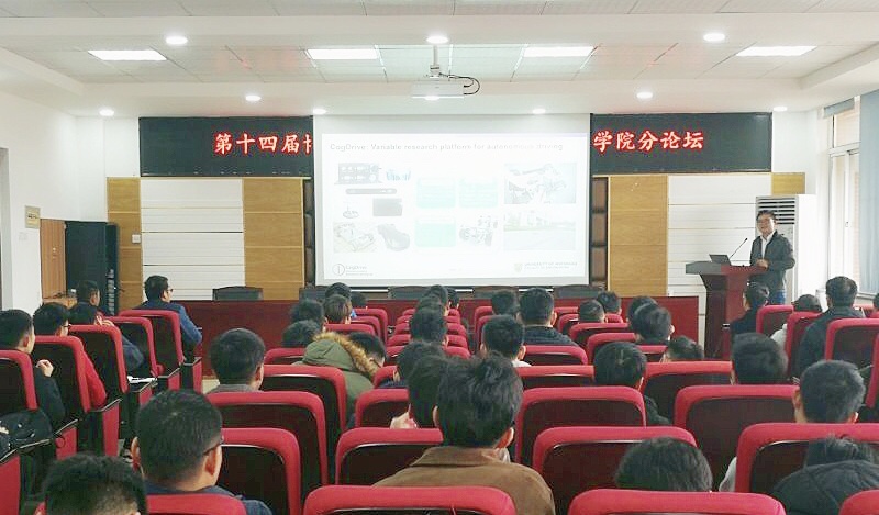 1223日上午,滑铁卢大学曹东璞副教授应汽车与机械工程学院邀请,于工科一号楼B-417开展题为“Driver Cognition and Cognitive Autonomous Driving”的学术讲座。此次讲座由胡林副院长主持,汽机学院部分教师及2018级全体研究生到场聆听。