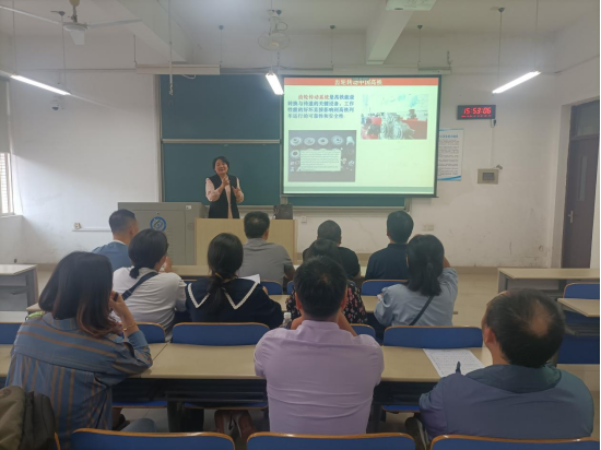 在教学质量月教学方法研讨中,雷兆虹老师介绍了课程思政内容在课程教学中的重要性。她表示,课程思政内容不仅是学校、学院对每位教师的教学要求,也是切实提高课堂教学效果的有效手段,能引导学生提高对课堂教学内容的重视程度,引起学生的学习兴趣,从而提升学生的学习效果与课堂的教学效果。随后,雷兆虹老师以《机械设计》课程中“齿轮传动里的动载荷系数”知识点作为课程思政案例进行了样板展示。众所周知,高铁作为“中国制造”的名片已经代表中国走向世界,雷老师以齿轮传动在高铁产品中的重要作用引入课程思政元素,然后引申到如何学习好齿轮传动设计知识等课堂内容。以此为例,雷老师介绍了其它课程的思政元素引入方法。