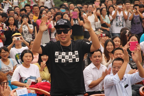 在沸焰音乐社温暖的吉他弹奏和GLC街舞协会热烈的街舞表演后,新车发布会正式开始。首先,叶泽致辞,他认为中国大学生方程式汽车大赛是一个将理论知识与实践操作充分结合的综合性平台,学生可以从中切实得到能力锻炼与提升,并鼓励同学们积极参加创新项目和社会实践,并祝愿CRT赛车队在10月征战襄阳中取得优异成绩。随后林东、陈勃生分别上台致辞,他们对队员们在过去一年的辛苦和付出表示认可,希望在场同学们积极加入车队发挥所长,并对车队未来发展寄予了美好期望和祝愿。杜海涛的出场受到同学们的热烈欢迎,现场亲密互动将气氛推向高潮,杜海涛表示会持续关注长理CRT赛车队的发展。