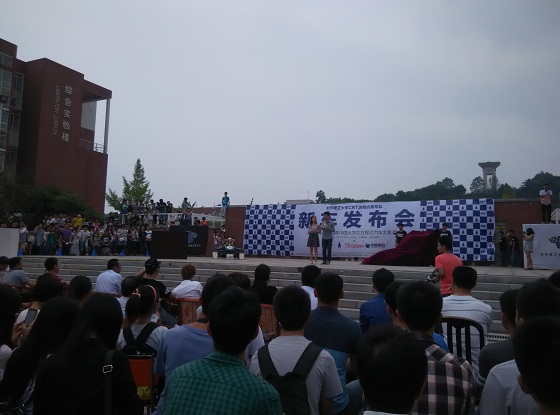 9月23日中午,太阳成集团tyc122cc入口CRT赛车队2014赛季新车发布会在云塘校区文化广场上隆重举行。太阳成集团tyc122cc入口副校长邹宏如、副校长叶泽、华曙高科有限责任公司常务副总经理陈勃生、著名电视主持人杜海涛、长沙熊先生文化传播公司CEO林东、长沙汽车产业联盟杨部长、湘车联盟副总经理叶倩娜及汽机学院党政领导与车队指导老师莅临本次新车发布会。发布会现场吸引了近千名学生围观。