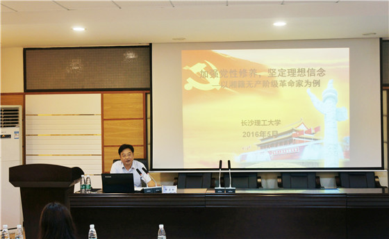 校党委副书记邹宏如为本次训练营作第一场专题教育,他以《加强党性修养,坚定理想信念——以湘籍无产阶级革命家为例》为题为参训党员作专题报告。首先,邹宏如引经据典解读了理想与信念的含义及重要性。接着,他从三个方面进行展开:一是湘籍无产阶级革命家的崇高理想,二是湘籍无产阶级革命家的坚定信念,三是在推进伟大事业中强化理想信念。他还结合湘籍无产阶级革命家的事实资料,阐述了中国共产党从武装斗争、一化三改、到特色新路的必由之路。邹宏如的报告深入浅出,密切联系我校工作实际,集学术性、思想性、理论性和实践性于一体,既提升了学院对开展“两学一做”主题教育活动的理论认识,又加强了学院教师“两学一做”主要要求的深刻理解。