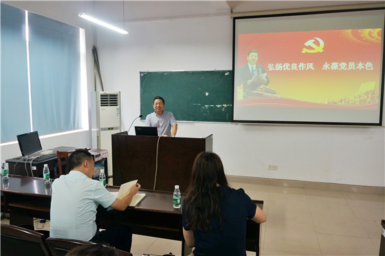 7月11日下午2:30,在工科一号楼B417室,校党委委员、纪委书记胡永乐为汽机学院全体教工党员以《弘扬优良作风 永葆党员本色》为题上党课,院党委书记曹瑛、院长杜荣华、党委副书记靳攀科、副院长龙春光、刘志强、毛聪及全体教工党员聆听了本次党课。