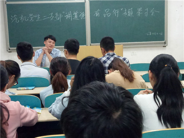 10月11日下午,汽机学院各学生党支部在理科楼C区一楼组织开展“两学一做”第三专题——“讲道德,有品行”的学习。各支部副书记主持,支部成员共同交流学习。