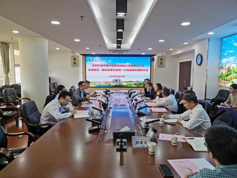 中国华能集团有限公司湖南分公司来我校调研分享到:2025年03月26日 17:12?来源:科学技术处 ? ?3月26日上午,中国华能集团有限公司湖南分公司党委委员、副总经理王智涛...