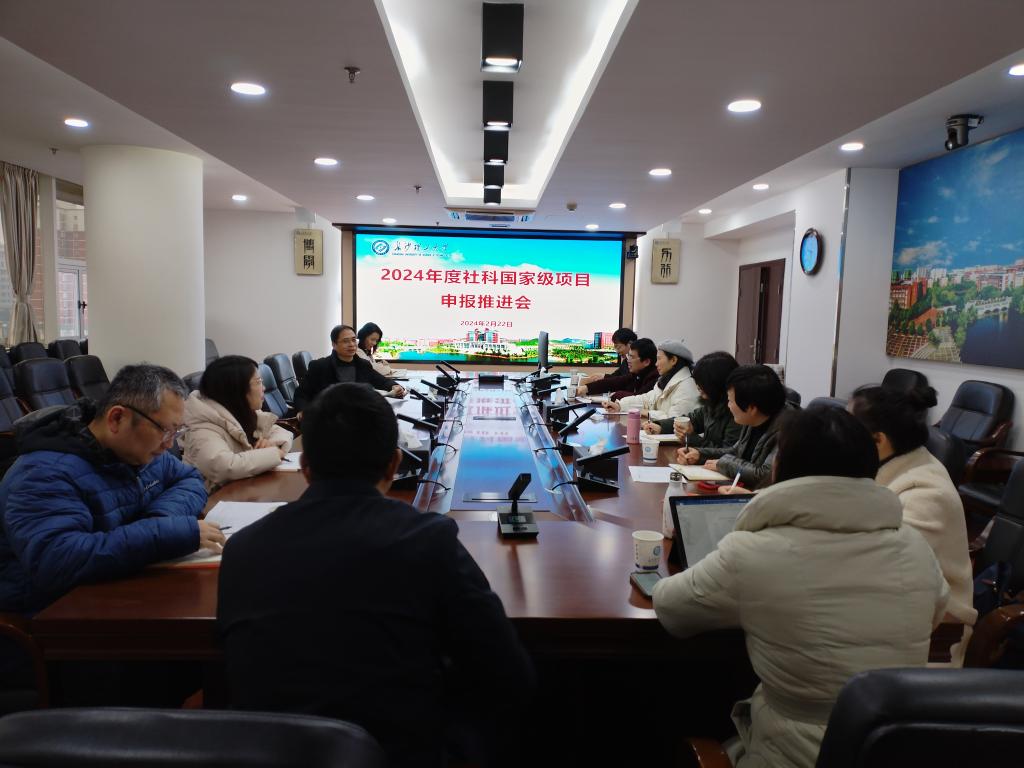 为做好2024年度社科项目组织申报工作,切实提升项目申报质量和综合竞争力,2月22日上午,社科处在一办六会议室组织召开2024年度国家级项目申报推进会。社科处处长刘建江主持会议,相关学院科研副院长、学工部副部长陶传谱,社科处副处长李雨燕及工作人员参加会议。
