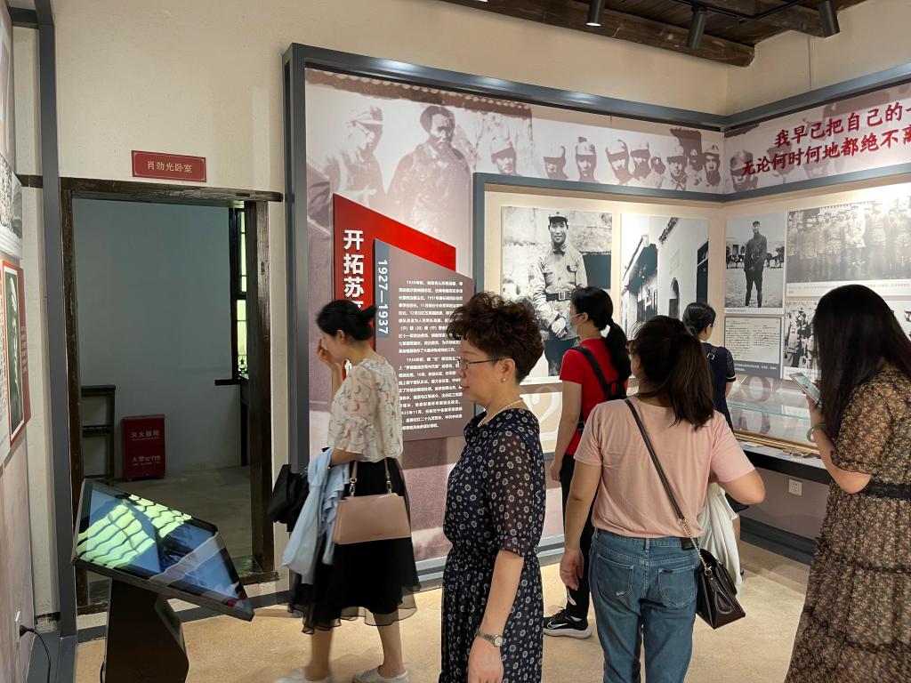 在肖劲光故居,党员们通过参观肖劲光生平事迹陈列室,了解开国大将肖劲光“两手空空打造人民海军” 的红色故事,感受到中华人民共和国成立初期我国海军力量的薄弱。1950年1月下旬,“旱鸭子”将军肖劲光离开长沙来到北京,开始了海军筹建工作。根据军委决定,肖劲光又陆续从第十二兵团兼湖南军区直属队抽调了总共2000余人来到北京。他们成为了人民海军最初的工作人员。入职2个月后,肖劲光到了威海,打算过海到刘公岛去察看,但没有船,只好向当地渔民租了一条小船。渔民开玩笑说:“你是个海军司令员,还要租我们的渔船!”这话对肖劲光刺激很大,他随即让同行人员记下了这段话,鞭策自己,暗下决心,一定要打造出一支强大的海军。