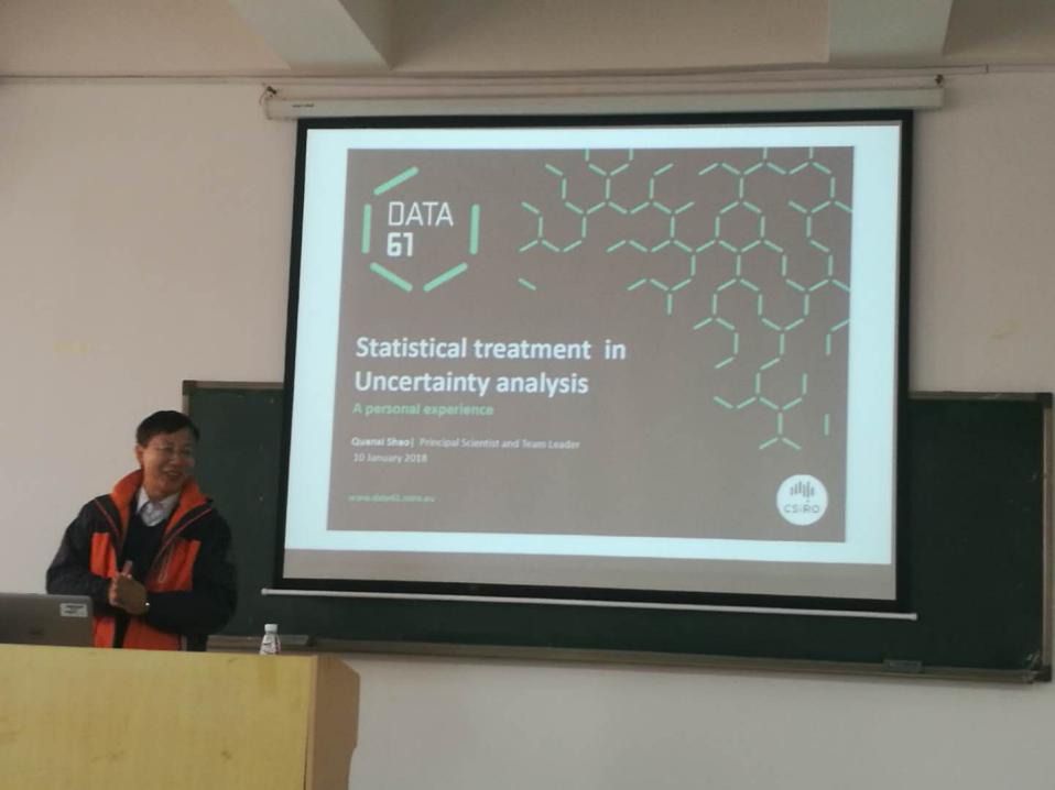 2018年1月10日下午,在云塘校区工三B319教室,澳大利亚国家数据研究所邵全喜教授应邀为我院师生作题为“Uncertainty analysis in hydrological modelling”的学术报告;中国科学院地理科学与资源研究所张永勇副研究员应邀为我院师生作题为“考虑生物地球化学过程的流域水循环系统模型构建及其在面源模拟中的应用”的学术报告。我院胡国华教授、李诚副教授、盛丰副教授、石月珍博士、隆院男博士、曾杭博士、黄草博士及相关专业的本科生、研究生参加了报告会。报告会由胡国华教授主持。