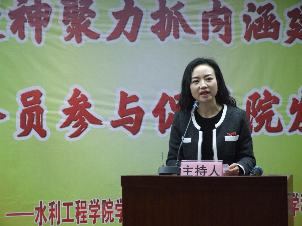 2017年,水利学院全院师生共同努力,获得水利工程一级博士授权点,水利工程学科在教育部第四轮学科评估位列B-、新增船海专业第一次招生、“大禹之子”志愿服务社团在湖南省第二届青年志愿服务项目大赛中摘得金奖、水文与水资源系党支部《脚踏田间地头,践行“两学一做”》成为全省示范典型、姚宇博士等一批获青年党员先后获得“湖湘青年英才”荣誉称号和各类奖项。此次大会召开之日,天寒地冻、天气恶劣,全院教职员工没有一人迟到,大家群策群力,共谋学院发展。2018年,全院师生将更加团结、更加奋进,一条心,一起想,一起拼,一起扛,牢记“教书育人”的崇高使命、勇挑“办一流本科专业,建一流水利工程学科”时代重任,坚持立德树人的根本任务,锐意改革、大胆创新,为推进学校“双一流”建设、实现“百强梦”的目标注入水利能量!