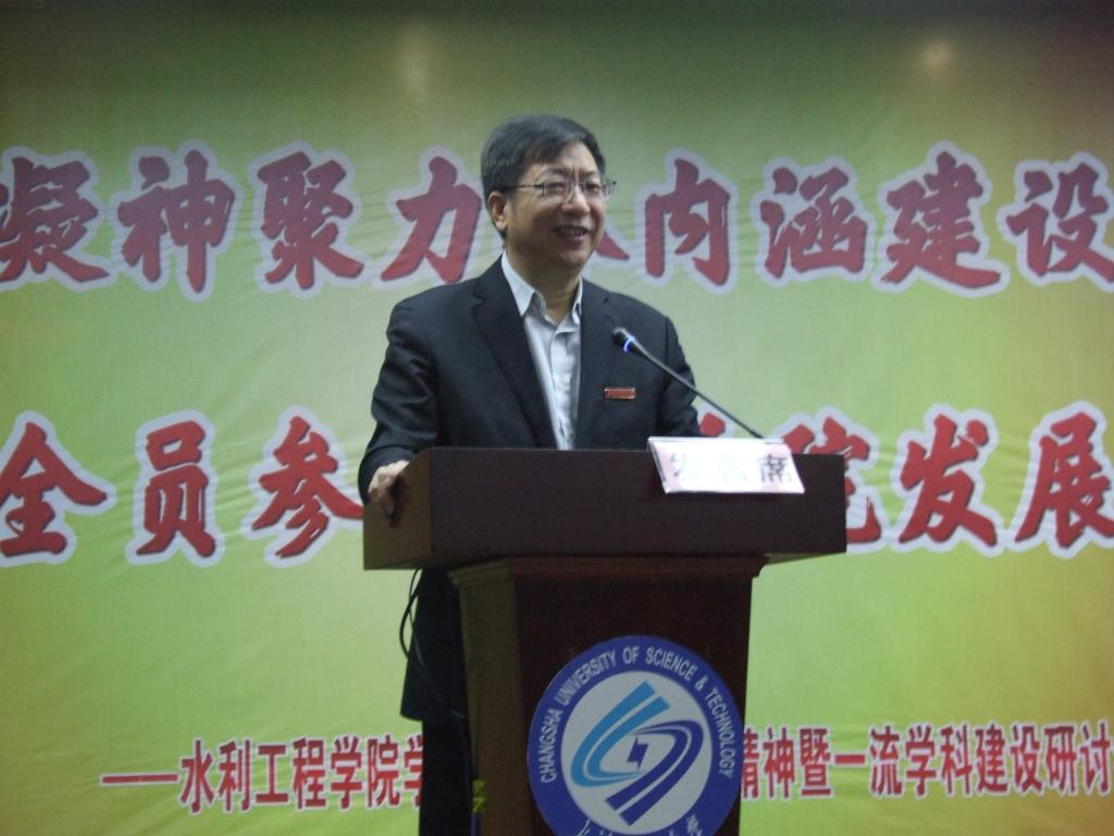 水利工程学科负责人、副校长蒋昌波教授做“凝神聚力,砥砺前行,共创水利工程学院新辉煌”报告,详细分析了学院学科发展现状,提出了“坚持发展理念,坚持以师生为中心,坚持全面深化改革,坚持抓重点、补短板、强弱项”的发展思路,从专业建设、学科建设、平台建设、打造队伍、国际化、体制和机制6个方面阐述了今后的行动计划。