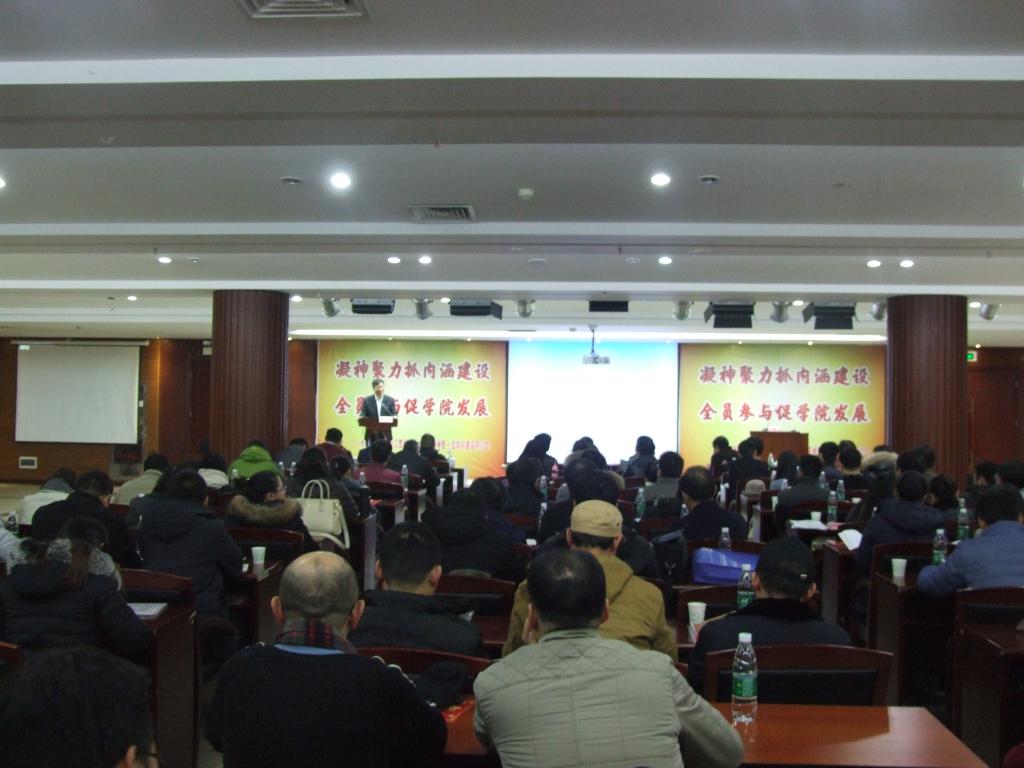 最后,学院常务副院长胡旭跃教授向全体教职员工行做2017年学院政工作报告,对学院工作进行了全面的总结,通报了学院财务收支情况,组织教职工讨论通过了该年度的绩效工资分配方案,并公示了学院本年度绩效工资分配情况。对教职工大会中提出的一些问题和建议逐一给与回复,对当场不能解决的问题,诸如学院支持科研团队建设、解决教职工科研用房等问题,表态并责成学院在2018年尽快落实教职工的提议提案。