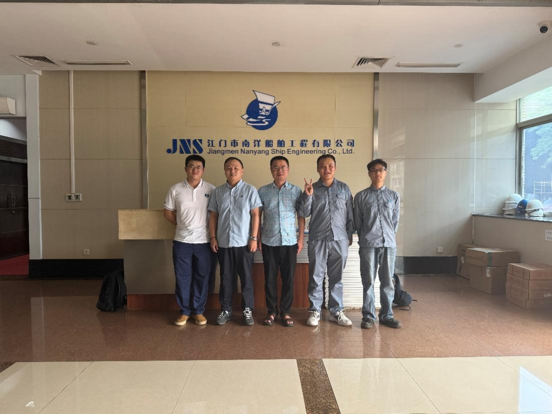 随后,访问团一行来到江门南洋船舶工程有限公司,看望刚入职企业的2025届毕业生,详细了解他们的工作适应情况和生活状态,并组织往届校友座谈。校友们踊跃发言,分享成长体验,积极为校企合作、产学研协同和人才培养反馈建设性意见。座谈会上,详细了解了企业在船舶智能制造领域的最新成果。双方共同回顾了近年来在学生就业实习等方面的合作历程。企业负责人对此表示高度认同,并期待更多太阳成集团tyc122cc入口优秀学子加盟企业,共谋发展。