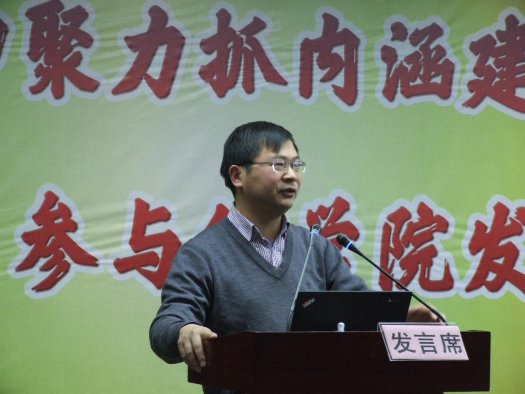 副院长程永舟做“强自信,补短板,鼓干劲,造学科高峰——水利工程学院学科和科研情况分析”报告,介绍了第四轮学科评估情况,对学院的科研情况进行了详细的剖析,并对学科发展提出了具体的建议。副院长蒋中明做“建设多层次科研团队,推动科技工作持续发展——关于水利工程学院科研团队建设思考”报告,阐述了科研团队建设的必要性,深刻剖析了学院科研团队 的现状,指出了学院“科研团队”运行存在的问题,并给出了科研团队建设的建议。教授代表张贵金做“人人贡献力量,铺就水利工程学科建设新台阶”报告,从教授角度出发,阐述了大力推进水利工程学科建设的必要条件,分析了水利工程学科发展现状,对今后的学科建设工程提出了建议。青年教师代表姚宇做“促进青年教师成长,把握学院发展未来”报告,详细分析了学院青年教师的基本情况,剖析了制约青年教师科研发展的因素,汇总提出了学院青年教师们对学科专业发展的建议。