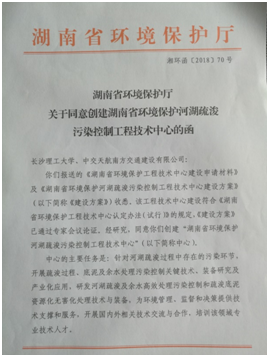 日前,湖南省环境保护厅正式发函,以我校为依托单位、以中交天航南方交通建设有限公司为协作单位,共同申报的“湖南省环境保护河湖疏浚污染控制工程技术中心”(以下简称工程技术中心)获批。