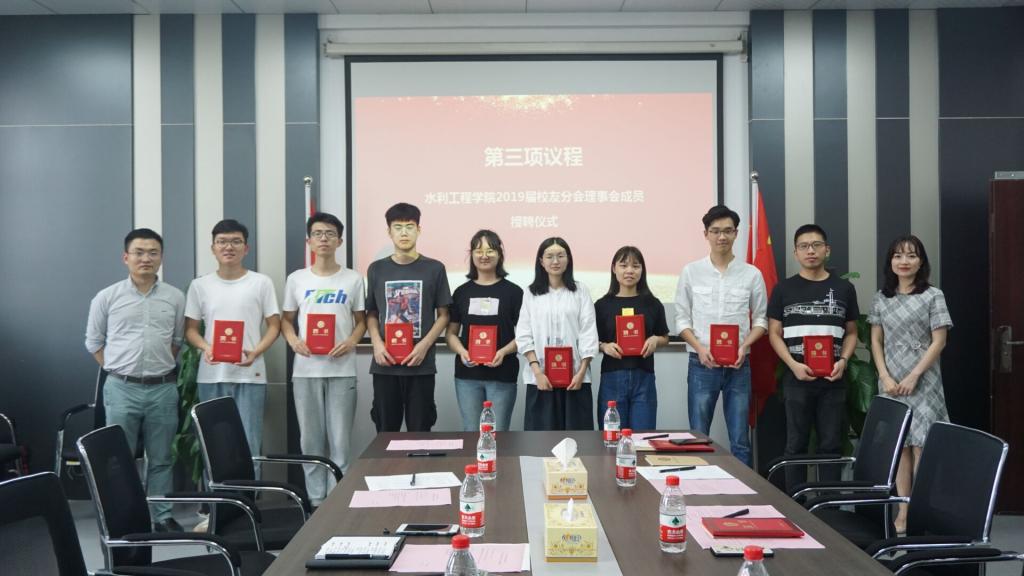 会上,水利学院2019届校友分会会长甯子豪表达了他对母校和学院浓浓的感激之情,同时表示一定会认真落实校友会工作,服务同学,为母校和学院的发展群策群力,献计献策,做出应有的贡献。随后,院党委书记喻玲娜及副书记王学成为理事会成员颁发聘书。