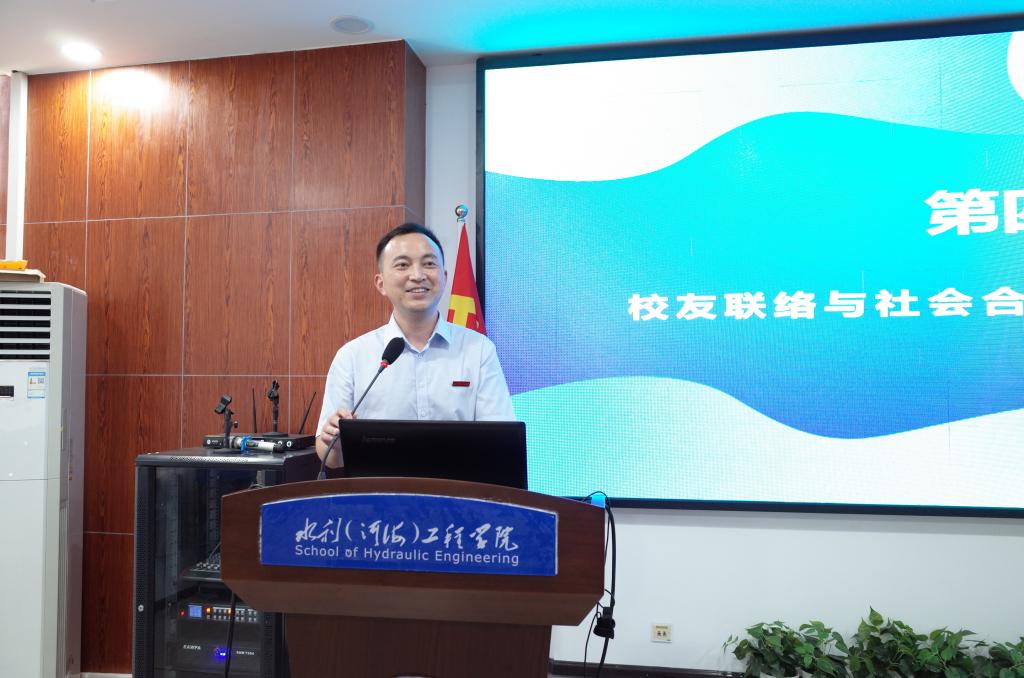 接着,校友联络与社会合作服务中心副主任(主持工作)李伟讲话,他首先肯定了水利工程学院校友工作,同时,他希望水利工程学院校友分会各项工作顺利开展,广大水利校友秉承优良传统,在各自的工作岗位上取得好的成绩。他代表校友中心向水利学院2020届校友分会提出希望:秉承优良传统,传承创新;搭建桥梁,凝心聚力,共谋发展;要有家国情怀,反哺国家、社会、学校。