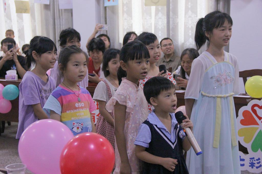 图为孩子们在演唱防溺水知识科普歌曲《孤“泳”者》。邹建云 摄
