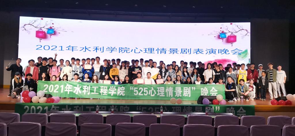 2021年5月22日晚,水利工程学院第十八届5.25“挫折*青春”心理情景剧晚会于金盆岭五教大礼堂成功举办。本次晚会由刘如意担任主持人,学院心理辅导员刘灿老师,20级年级辅导员王正博老师以及心理部成员代表黄妍担任评委,班主任毛建平老师、雷鹏老师、心理部全体成员及20级全体同学参加本次活动。