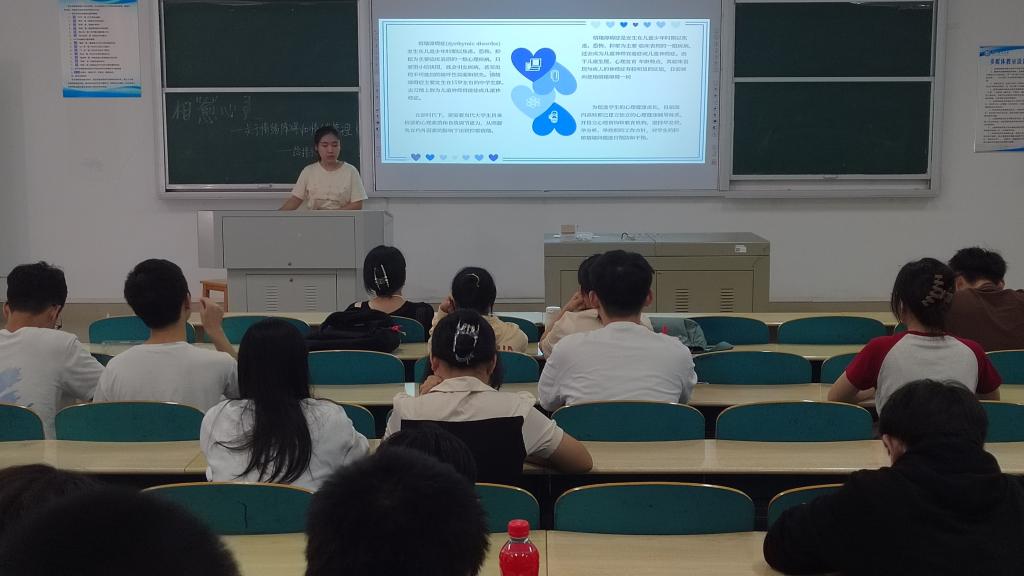 此次班会各班心委通过PPT讲解的形式向同学们宣传了精神卫生科学知识有关情绪障碍及情绪管理方面的心理知识,随后同学们围绕于情绪障碍及情绪管理的主题来发表自己的见解,最后由心理委员进行班会内容总结。