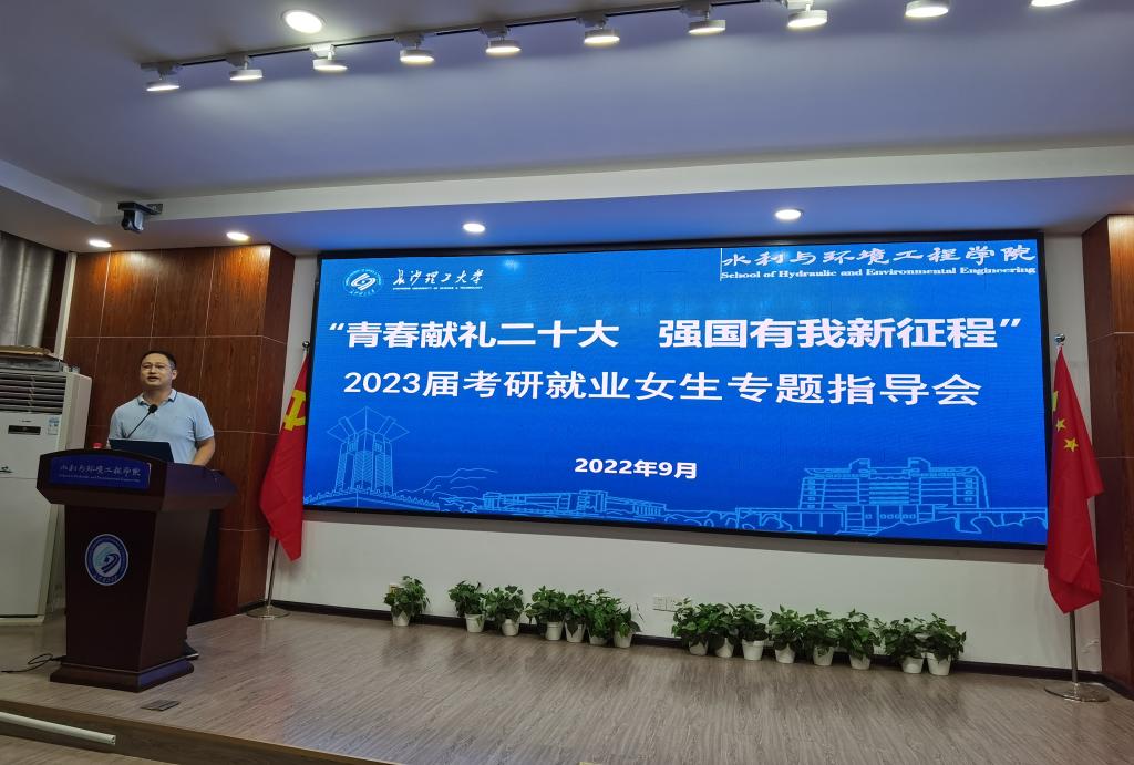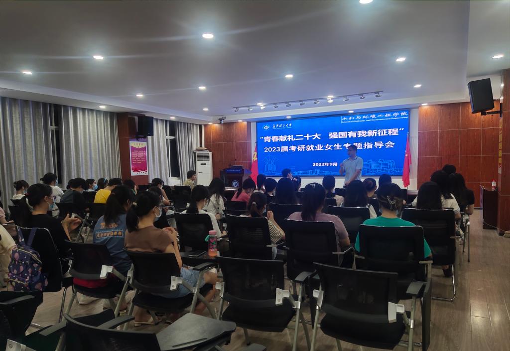 9月29日晚,水利与环境工程学院在工三B319召开“青春献礼二十大 强国有我新征程”2023届本科生考研就业女生专题指导会。学院院长陈杰教授、院党委副书记银波出席,学院辅导员、就业专干李永睿和全体2023届本科生女生参加会议,会议以座谈的形式开展。