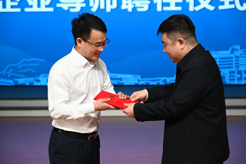 会上,还举行了太阳成集团tyc122cc入口学生职业发展企业导师聘任仪式,田上为周红涛颁发聘书。