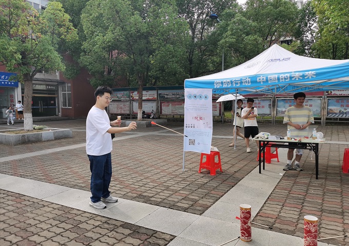 为减轻同学们学习科研上的压力,丰富校园文化生活,6月9日下午,水利与环境工程学院在汀香园门口举行“5·25”研究生趣味投壶活动。