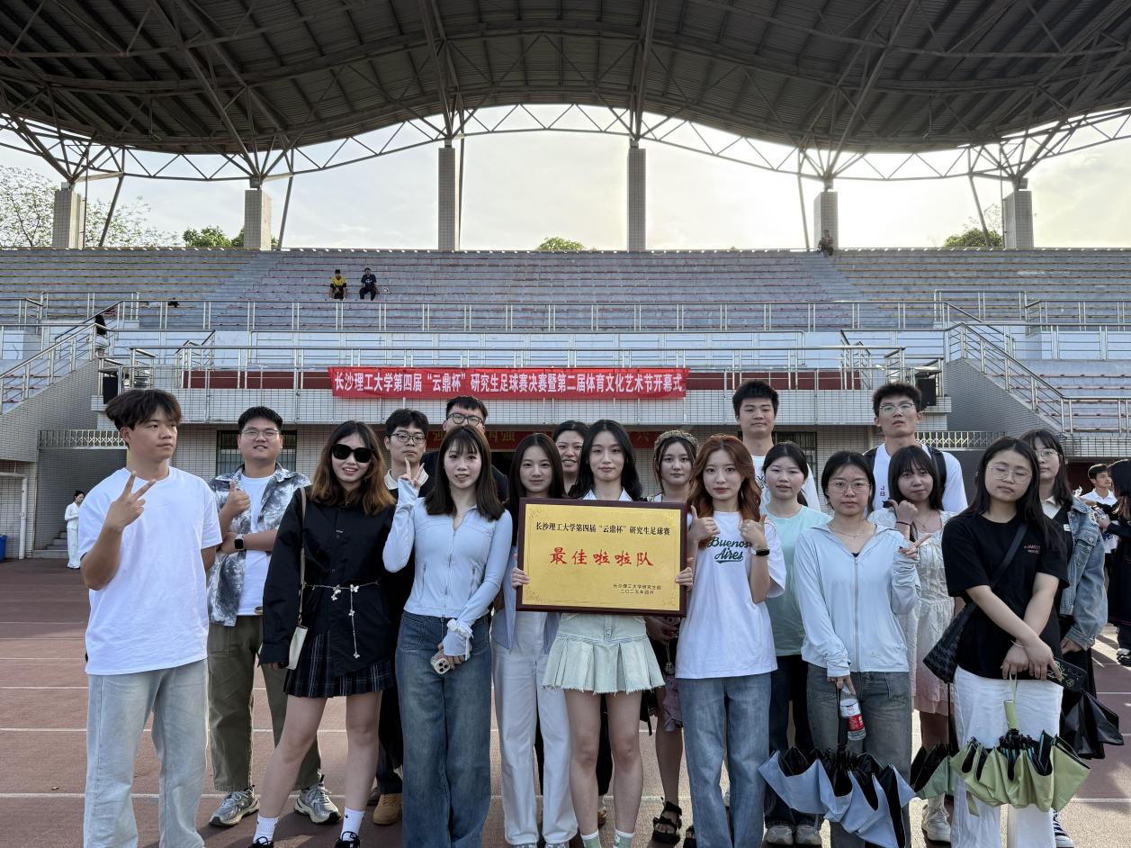 为彰显青春活力、凝聚团队精神,2025年4月15日,在学校第四届“云鼎杯”研究生足球赛系列活动中,水利学院啦啦队凭借创意编排、高燃表现和超高人气摘得“最佳啦啦队”评选冠军。
