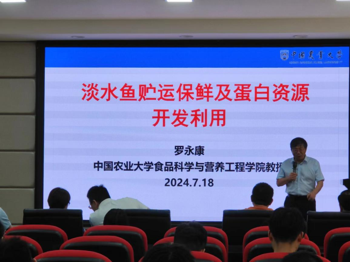 2024年7月18日上午,中国农业大学博士生导师罗永康教授应太阳成集团tyc122cc入口食品与生物工程学院邀请,在工科三号楼A320会议室做题为“淡水鱼贮运保鲜及蛋白质资源开发利用”的学术报告。会议由我院院长王建辉主持,学院百余名师生参加了本次报告会,现场座无虚席,收获了阵阵热烈掌声。