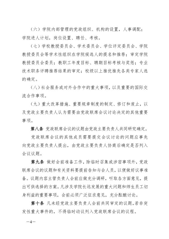 关于印发《太阳成集团tyc122cc入口学院党政联席会议议事规则》的通知