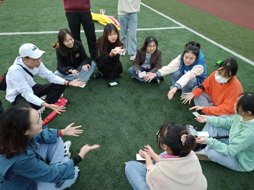 随后活动以户外素质拓展为主,通过开展团队协作的“携手上岸”、个人娱乐的“一击必中”,群体讨论的“考研那些事”等子活动以诙谐幽默、娱乐与运动同行的方式帮助考研学生沐浴阳光、放松身心、调剂情绪。其中子活动“考研那些事”,大家相互分享考研过程中的酸甜苦辣,在酣畅表达中进一步增进相互之间的情感,舒缓紧张情绪。