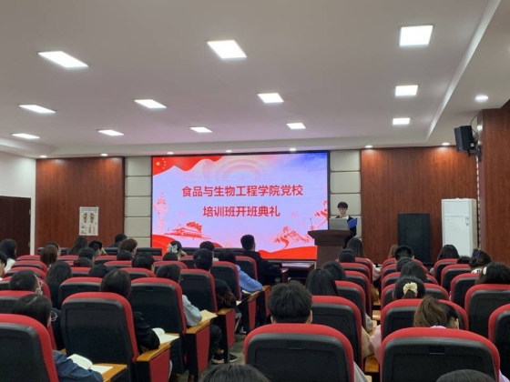 10月27日晚,食品与生物工程学院分党校于工三A320举行开班典礼。食品与生物工程学院党总支负责人王建辉、党建辅导员胡佳佳等师生80人出席。