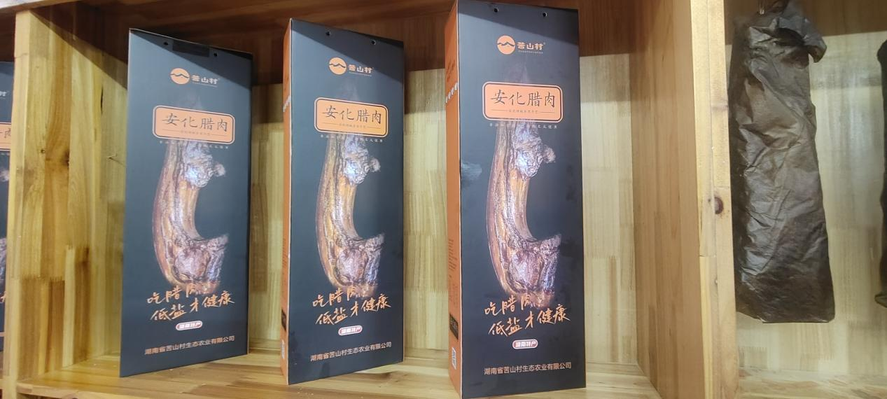 实践团的第一站是湖南省苦山村生态农业有限公司。近距离了解安化冷熏腊肉的产业现状与传统工艺。“安化冷熏腊肉不仅在制作工艺上独具特色,且因其气候、食材等自然资源是独特性,安化腊肉产业几乎无法被外界所复制。”董事长刘波介绍说。