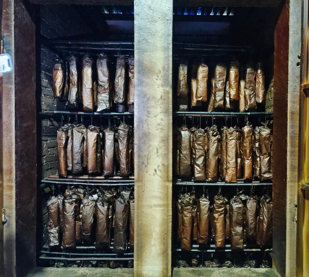 接下来实践团走访了安化湖湘肴农业发展有限责任公司,探寻安化腊肉中纸包腊肉的发展现状。在参观其生产流程和车间的过程中,实践团成员边观察边与工作人员交流,一同揭开了传统安化腊肉的奥妙:在传统工艺中,安化腊肉的熏制采用本土山茶树等杂木为燃料,火力足但不会冒浓烟,所熏制的腊肉不但无烟熏火燎的味,且带有淡淡的果香。