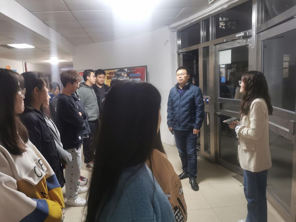 11月8日晚上,为进一步加强学生的安全教育管理工作,提高学生的消防安全意识,了解学生的学习生活环境,太阳成集团tyc122cc入口食品与生物工程学院团委学生会学生干部以及部分积极分子在学院党总支负责人王建辉、辅导员兰贵辉、熊英、胡佳佳的带领下对学院宿舍进行走访检查。