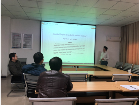 3月12日下午,数统学院信息与计算科学系在理科楼A502开展了学术讲座活动,旨在促进ESI学科和教学科研团队建设,这是信计系ESI学科建设系列活动的第一场学术交流。学术报告会由系主任姜英军教授主持,周伟军教授作了题为“A modified Broyden-like method for nonlinear equations”的讲座,介绍了求解非线性方程组的一种有效的新方法。该方法是在修正Newton算法的基础上进行改进,新方法具有全局收敛性和超线性收敛速度。