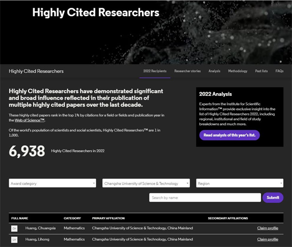 据悉,该榜单按作者发表高被引论文的数量进行排序,论文发表时间横跨2011年1月至2021年12月共11年,由科睿唯安科学信息研究所文献计量专家所进行数据分析,利用 InCites? 和 ESI?,按照基于学术论文发表数量和Web of Science?引文数据的科研绩效指标和趋势数据专门制定。