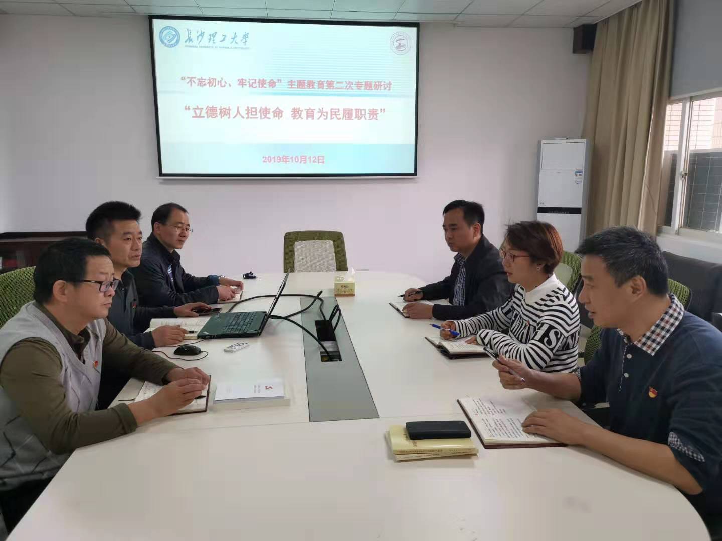 10月12日中午,学院党委召开“不忘初心、牢记使命”主题教育专题学习研讨会,围绕“立德树人担使命,教育为民履职责”为专题,树新风,扬正气,讲团结,顾大局,建设健康向上的学院文化、在深入学习习近平总书记关于教育、师德师风一系列重要论述的基础上,结合“不忘初心、牢记使命”主题教育和学院工作实际,就新形势下如何建设健康向上的学院文化、加强和改进教学科研工作等深入研讨,以问题为导向,以工作落实为目标,探讨了学院改革发展中如何建设学院文化、提升教学科研的能力和水平等问题。会议由党委书记张宏伟主持。
