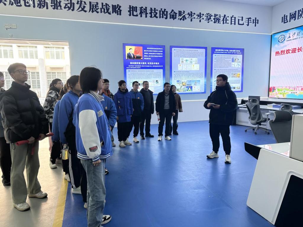 12月15日上午,长沙市明德天心中学师生来我校云塘校区开展研学活动。数学与统计学院党委副书记郑忠辉、电气与信息工程学院党委副书记周巍、辅导员楚艳鸽,物理与电子科学学院学工办主任蒋琳嫒负责接待和讲解,长沙市明德天心中学20余名师生参与活动。