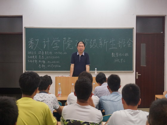 副校长黄立宏教授专门来到数学1502班的班会教室,为同学们主讲了“学业与成长”大学第一课。数计学院党委书记毛光华、院长李应求、副书记涂道勇也出席了本次班会。