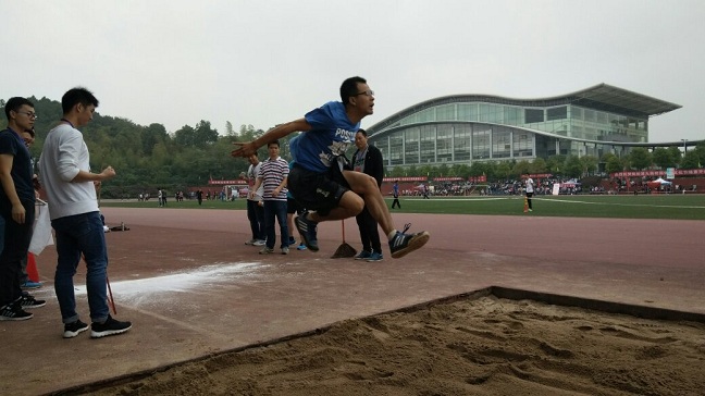 本届教职工项目主要有:男女100m、男女400m接力、男女800m、男子1500m、跳高、跳远及铅球等项目。我院学工办年轻有热情的郑国义老师,他不仅在学生工作中全心全意的付出,平时还积极参加各种竞赛活动,在本届运动会男子1500m荣获得第六名。我院科研办主任李秋桂老师平时就爱好运动,积极锻炼身体,磨练自己顽强拼搏的意志,他在此次运动会上发扬“更快、更高、更强”的奥运宗旨,在男子800m勇夺第一。学院文体委员李建樑博士在跳高和跳远项目中追求极限,挑战自我,最终分别取得第二名、第五名的优异成绩。在女子4×100m接力赛中,比赛运动员团结一心,永不言弃,在女子团体中取得第八名。 正如我院党委副书记兼院工会主席涂道勇所说,我院参赛运动员在本次运动会 ,顽强拼搏,超越极限,尽自身最大努力去参加比赛 ,值得鼓励和发扬,最后他还希望参赛的同学们能够挑战自我,赛出好成绩来。