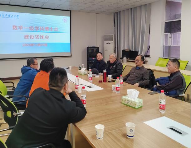 12月29日下午,学院在理科楼A212召开了数学一级学科博士点建设专家咨询会,华罗庚数学奖获得者、中南大学侯振挺教授和国家杰青、中国科学院数学与系统科学研究院巩馥洲研究员受邀来学院指导。学院党委书记邓崛峰,副院长李景、胡海军,学科方向带头人李应求教授、朱恩文教授及学术骨干赵乃非博士参加了咨询会。